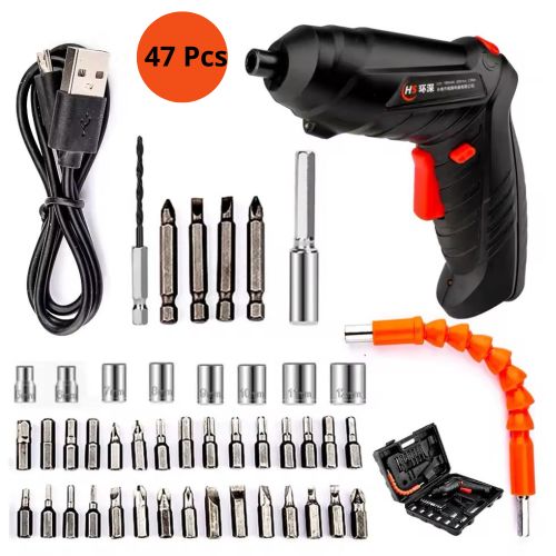 خليك ديما مرتاح مع مفك كهربائي محمول وإحترافي ، خفيف الوزن، سهل الاستخدام، كيتشارجا بالضوء وكيجي معاه 47 بياسة مختلفة باش يخدم معاك في أي بلاصة بدون مجهود او تعب.