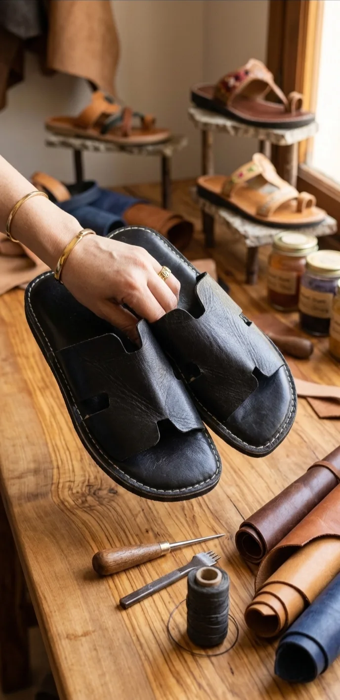 ✅ جلد طبيعي عالي الجودة يمنح الصندالة متانة وأناقة تدوم طويلاً.